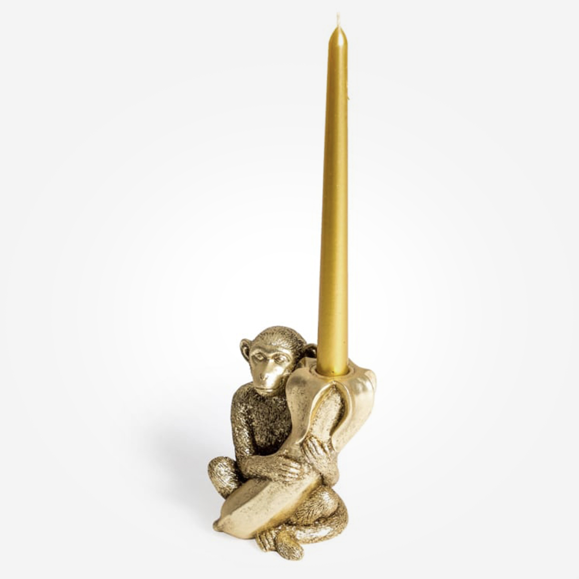 Get ready to go wild for this cheeky little monkey! He thought he was prepped for lunch, but surprise! He’s actually holding a whimsical home for a dinner candle! With its dazzling gold finish, it’s the perfect gift for anyone who loves a touch of animal mischief. Have a blast and pop in a vividly bright candle to brighten up your space with a burst of joy!